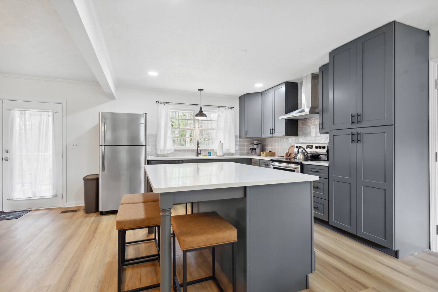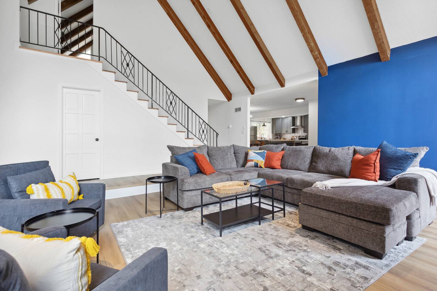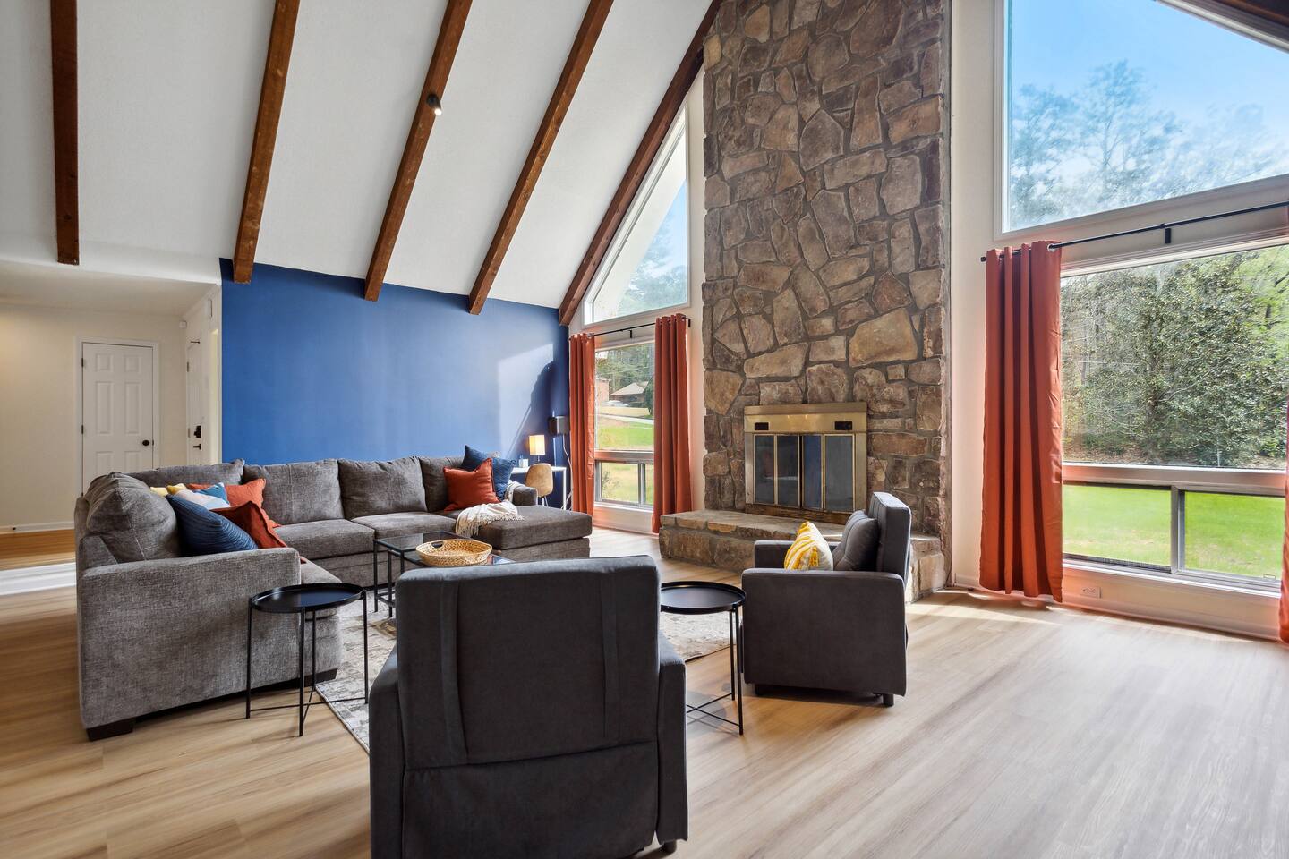Your perfect getaway in our spacious family home, designed for comfort and relaxation! With a big living area with tall windows, a cozy fireplace, and vaulted ceilings, it's ideal for gathering with friends or family. This home’s versatile layout sleeps up to 10 guests and includes a full kitchen with seating for 16. Enjoy private moments on the expansive deck or unwind in any room with a 55” 4K HD Smart TV. Whether for fun or relaxation, this home has everything you need for a memorable stay.