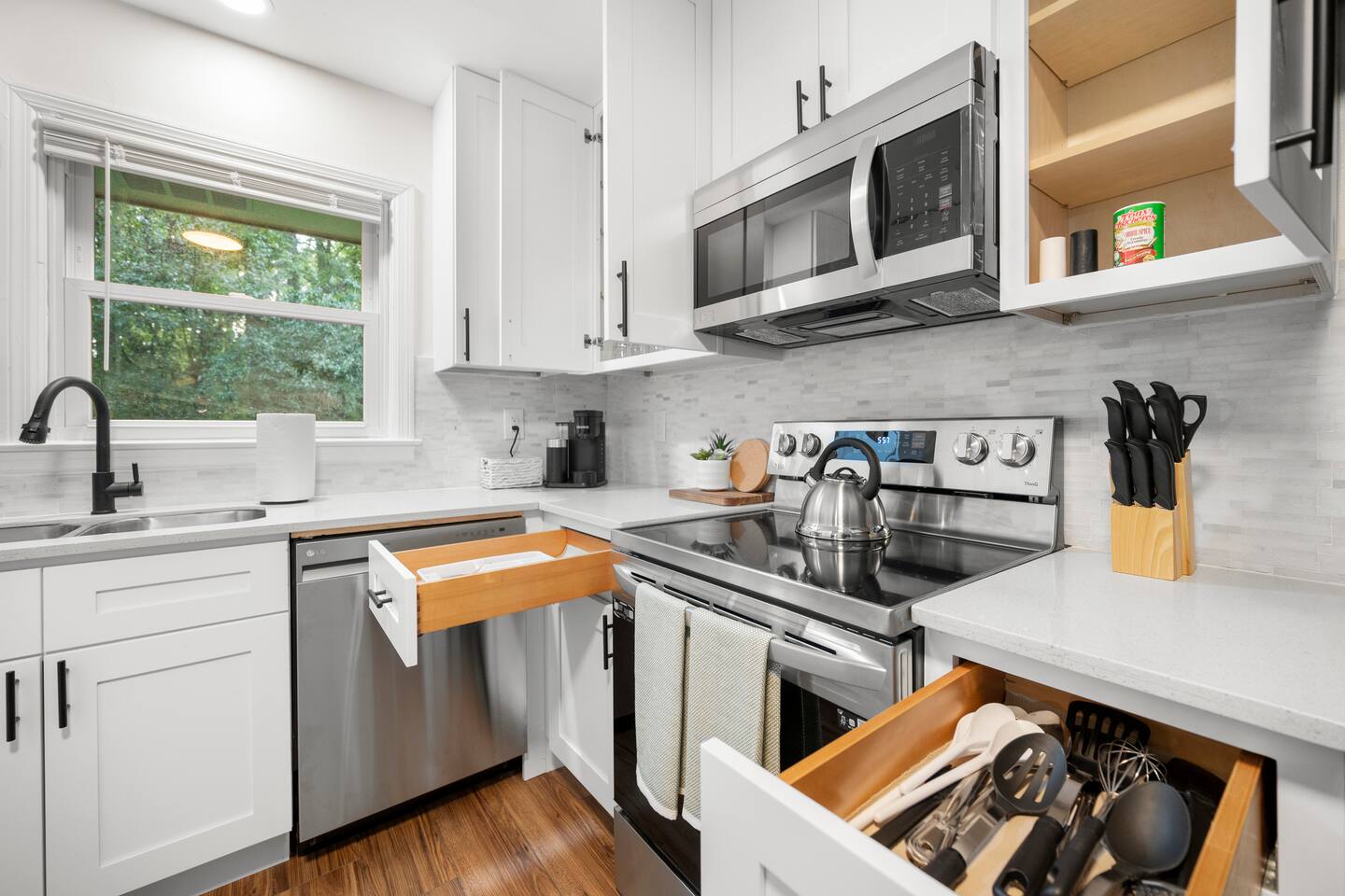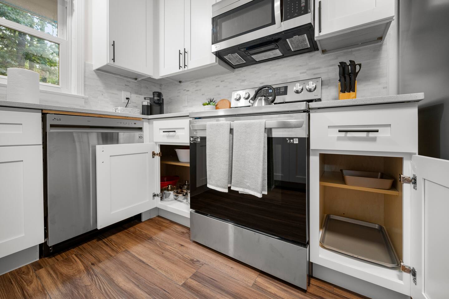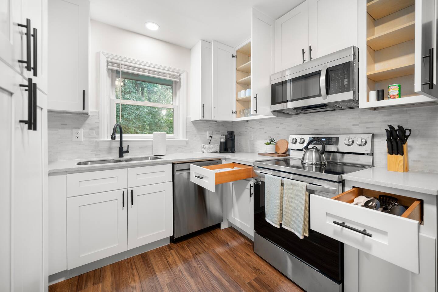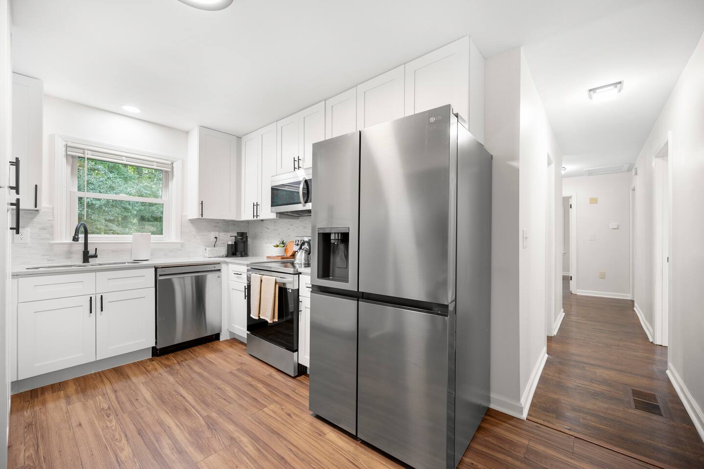 Our newly renovated family home is the perfect place to relax and unwind after a long day of exploring. The spacious fenced-in backyard is perfect for your dogs to run and play. The home is also equipped with all the amenities you need for a comfortable stay, including brand-new appliances, a fully stocked kitchen, and a comfortable living room with a Roku smart TV.
